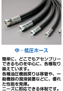自動車、建設機械および産業機械において油圧装置を稼働させるための高圧ホース。高品質で信頼性のある横浜ゴムの高圧ホースで高度化、多様化する油圧システムのあらゆるニーズに可能なワイド製品。
